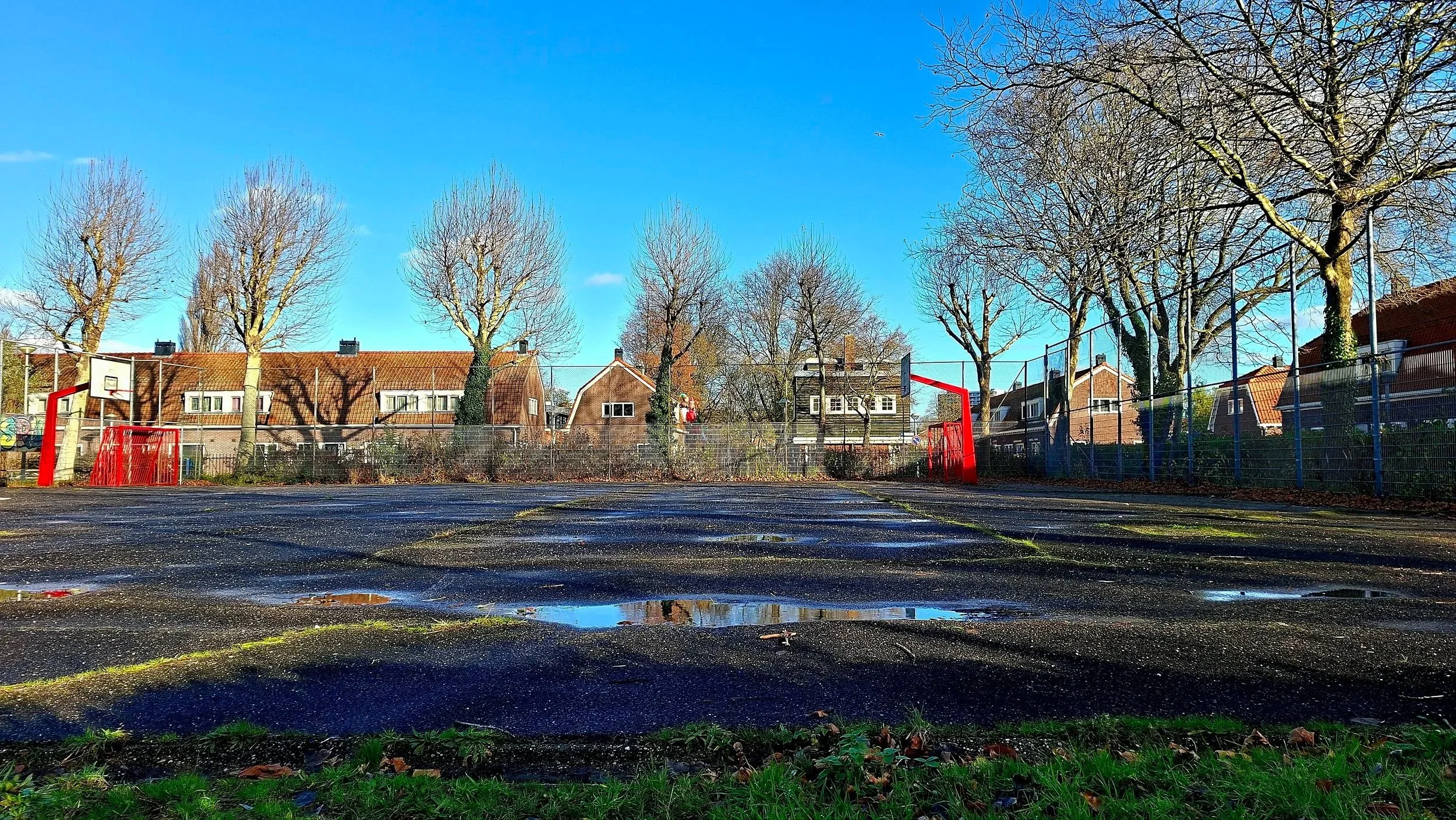 Asfalt aan de oostkant van het Plejadenplein